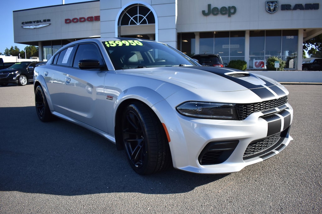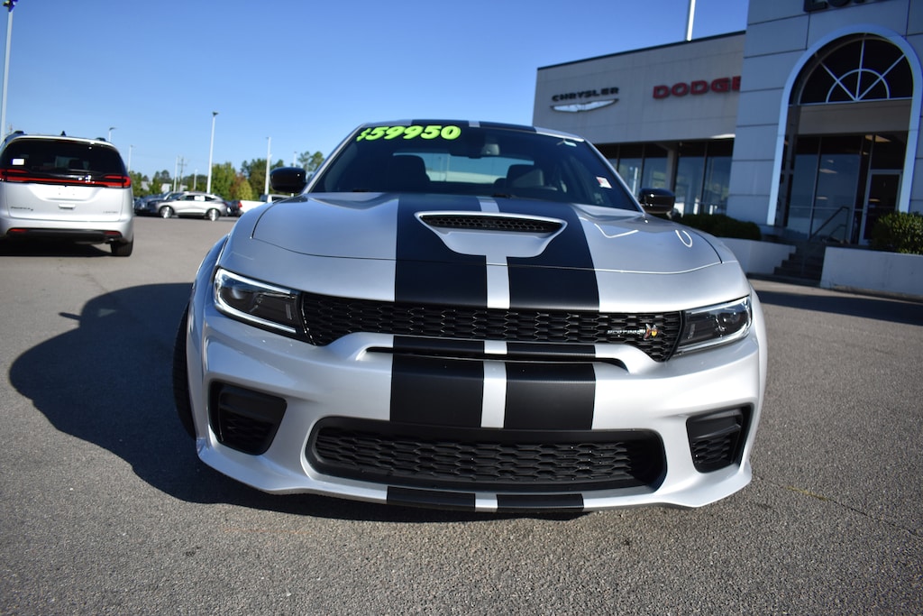 Clean CARFAX. CARFAX One-Owner. Triple Nickel Clearcoat 2023 Dodge Charger R/T Scat Pack Widebody RWD 8-Speed Automatic SRT HEMI 6.4L V8 MDS 1-Yr SiriusXM Guardian Trial, 19 harman/kardon GreenEdge Speakers, 2-Piece Shark Fin Antenna, 4-Wheel Disc Brakes, 4G LTE Wi-Fi Hot Spot, 6 Speakers, 8.4" Touchscreen Display, ABS brakes, Adaptive Damping Suspension, Adaptive Damping Suspension (DISC), Air Conditioning, All Speed Traction Control, Alloy wheels, AM/FM radio: SiriusXM, Anti-whiplash front head restraints, Apple CarPlay, Apple CarPlay/Android Auto, Auto Adjust In Reverse Exterior Mirrors, Auto-Dimming Exterior Driver Mirror, Auto-dimming Rear-View mirror, Automatic temperature control, Black-Edged Premium Floormats, Blind Spot & Cross Path Detection, Blind Spot Memory/Power/Heat Mirror, Body Color Fender Flares, Brake assist, Brembo 6-Pot Fixed Front Caliper Brakes, Bumpers: body-color, Cloth Performance Seats w/Heat, Compass, Delay-off headlights, Driver & Passenger Lower LED Lamps, Dual front impact airbags, Dual front side impact airbags, Dual Stripe - Carbon, Electronic Stability Control, Emergency communication system: SiriusXM Guardian, Exterior Mirrors Courtesy Lamps, Exterior Mirrors w/Heating Element, Flat-Bottom Steering Wheel, For Details, Visit DriveUconnect.com, Four wheel independent suspension, Front anti-roll bar, Front dual zone A/C, Front fog lights, Front Overhead LED Lighting, Fully automatic headlights, Garage door transmitter: HomeLink, Google Android Auto, GPS Antenna Input, harman/kardon Audio Group, harman/kardon GreenEdge Amp, HD Radio, Heated door mirrors, Heated Front Seats, Heated front seats, Heated steering wheel, Illuminated entry, Integrated Center Stack Radio, Integrated Voice Command w/Bluetooth, Knee airbag, Leather Shift Knob, Low tire pressure warning, Media Hub (2 USB, AUX), Occupant sensing airbag, Outside temperature display, Overhead airbag, Panic alarm, ParkView Rear Back-Up Camera, Performance Shift Indicator, Plus Group, Power 2-Way Driver Lumbar Adjust, Power 2-Way Passenger Lumbar Adjust, Power door mirrors, Power driver seat, Power Front Driver/Passenger Seats, Power steering, Power Sunroof, Power Tilt/Telescope Steering Column, Power windows, Premium-Stitched Dash Panel, Quick Order Package 21V Scat Pack Widebody, Radio: Uconnect 4C w/8.4" Display, Radio/Driver Seat/Mirrors Memory, Rear anti-roll bar, Rear Armrest w/Cupholder Seat, Rear window defroster, Remote keyless entry, Scat Pack Logo Nappa/Alcantara Seat, Security system, Speed control, Speed-Sensitive Wipers, Split folding rear seat, Spoiler, Sport steering wheel, Steering wheel mounted audio controls, Surround Sound, Tachometer, Telescoping steering wheel, Tilt steering wheel, Traction control, Trip computer, USB Host Flip, Variably intermittent wipers, Ventilated Front Seats, Wheels: 20" x 11" Carbon Black Aluminum, Widebody Competition Suspension, Widebody Package.