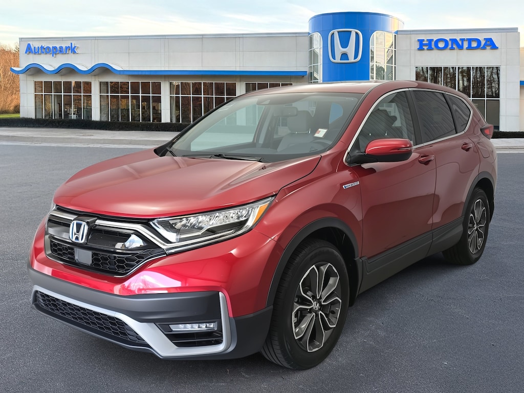 Clean CARFAX. CARFAX One-Owner. Radiant Red Metallic 2020 Honda CR-V Hybrid EX-L AWD eCVT 2.0L I4 DOHC 16V 18" Alloy Wheels, 4-Wheel Disc Brakes, 8 Speakers, ABS brakes, Adaptive Cruise Control: Adaptive Cruise Control (ACC) with Low-Speed Follow, Air Conditioning, AM/FM radio: SiriusXM, Apple CarPlay/Android Auto, Auto High-beam Headlights, Auto-dimming Rear-View mirror, Automatic temperature control, Blind Spot Information (BSI) System warning, Brake assist, Bumpers: body-color, Delay-off headlights, Electronic Stability Control, Exterior Parking Camera Rear, Forward collision: Collision Mitigation Braking System (CMBS) + FCW mitigation, Front Bucket Seats, Garage door transmitter: HomeLink, Heated Front Bucket Seats, Memory seat, Occupant sensing airbag, Outside temperature display, Power driver seat, Power Liftgate, Power moonroof, Remote keyless entry, Steering wheel mounted audio controls, Telescoping steering wheel.