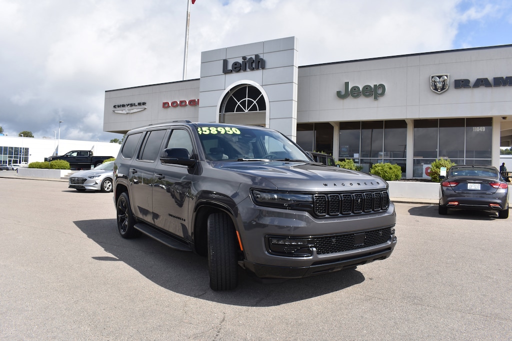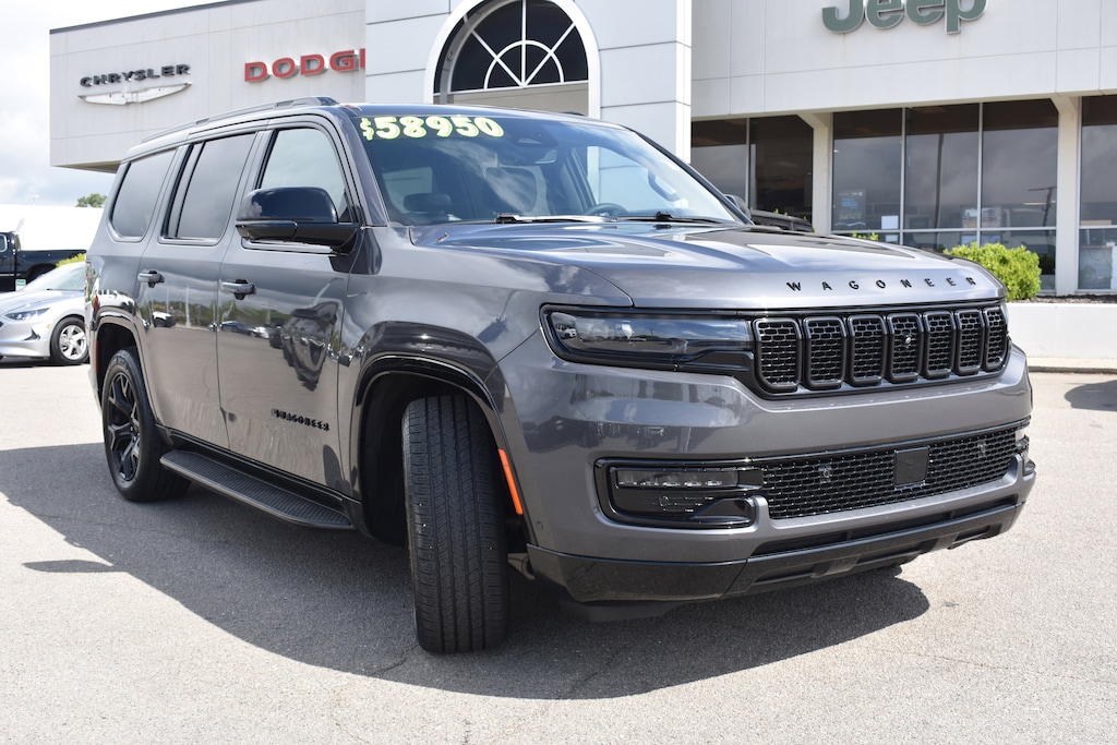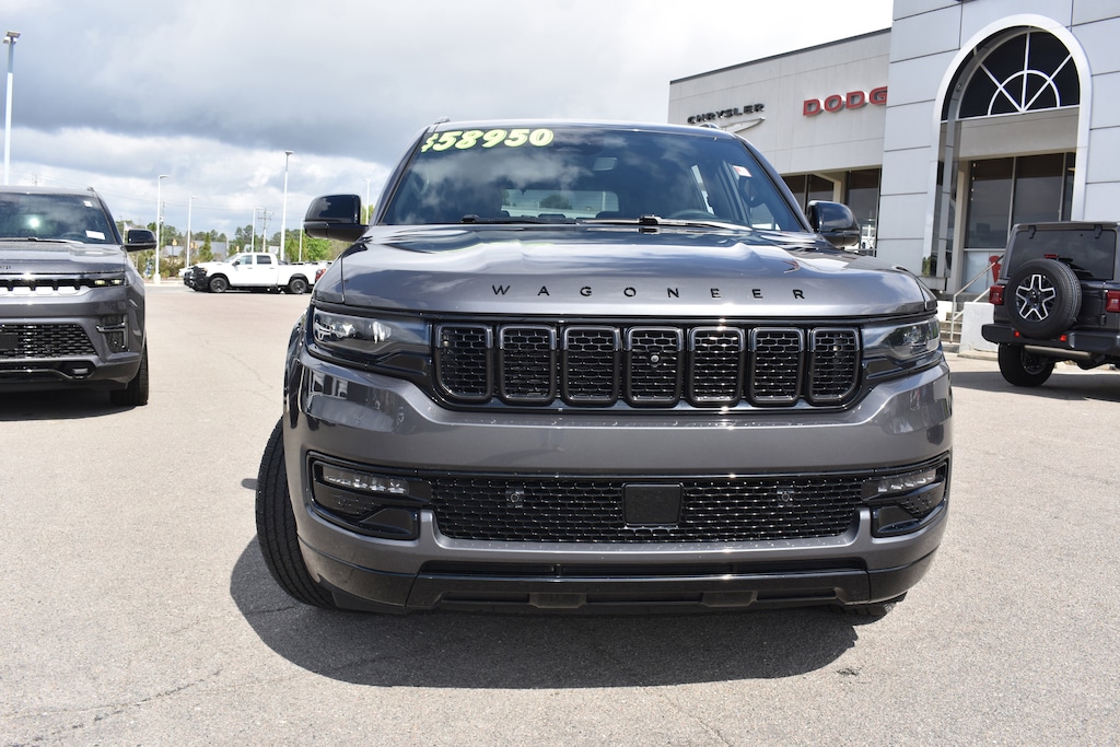 Clean CARFAX. CARFAX One-Owner. Baltic Gray Metallic Clearcoat 2024 Jeep Wagoneer Series II 4WD 8-Speed Automatic 3.0L I6 10 Speakers, 118 MPH Maximum Speed Calibration, 2nd Row Manual Window Shades, 3 Panel Sunroof, 3.55 Rear Axle Ratio, 3rd row seats: bench, 4-Wheel Disc Brakes, ABS brakes, Adjustable pedals, Adjustable Roof Rail Crossbars, Air Conditioning, All-Season Floor Mats, Alloy wheels, AM/FM radio: SiriusXM with 360L, Anti-whiplash front head restraints, Apple CarPlay/Android Auto, Audio memory, Auto High Beam Headlamp Control, Auto-dimming door mirrors, Auto-dimming Rear-View mirror, Auto-leveling suspension, Automatic temperature control, Black Interior Accents, Brake assist, Bumpers: body-color, Carbide Appearance Package, Cargo Cover, Cargo Tray, Compass, Convenience Group I, Delay-off headlights, Driver's Seat Mounted Armrest, Drowsy Driver Detection, Dual front impact airbags, Dual front side impact airbags, Electronic Stability Control, Emergency communication system: Wagoneer Connect, Exterior Parking Camera Rear, Four wheel independent suspension, Front anti-roll bar, Front dual zone A/C, Front fog lights, Fully automatic headlights, Garage door transmitter, Genuine wood console insert, Genuine wood dashboard insert, Genuine wood door panel insert, Heads-Up Display, Heated door mirrors, Heated front seats, Heated rear seats, Heated steering wheel, Illuminated entry, Intersection Collision Assist System, Knee airbag, Leather Trimmed Bucket Seats, Low tire pressure warning, Memory seat, MOPAR Interior Protection Package, Navigation System, Normal Duty Suspension, Occupant sensing airbag, Overhead airbag, P&P Park & Unpark Assist w/Stop System, Panic alarm, Passenger seat mounted armrest, Pedal memory, Piano Black Exterior Accents, Power adjustable front head restraints, Power door mirrors, Power driver seat, Power Liftgate, Power passenger seat, Power steering, Power windows, Quick Order Package 25F Carbide, Radio data system, Radio: Uconnect 5 Nav w/10.1" Display, Rain sensing wipers, Rear air conditioning, Rear anti-roll bar, Rear dual zone A/C, Rear window defroster, Rear window wiper, Reclining 3rd row seat, Remote keyless entry, Reversible Carpet/Vinyl Cargo Mat, Security system, Side Distance Warning, Speed control, Speed-sensing steering, Speed-Sensitive Wipers, Split folding rear seat, Steering wheel memory, Steering wheel mounted audio controls, Surround View Camera System, Tachometer, Telescoping steering wheel, Tilt steering wheel, Traction control, Traffic Sign Recognition, Trip computer, Turn signal indicator mirrors, Variably intermittent wipers, Ventilated front seats, Voltmeter, Wheels: 20" x 9" Gloss Black Painted Aluminum.