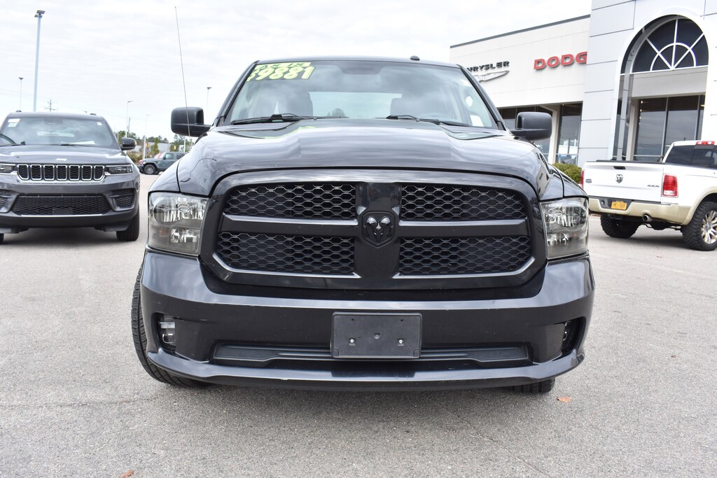 Brilliant Black Crystal Pearlcoat 2016 Ram 1500 Express RWD 8-Speed Automatic HEMI 5.7L V8 Multi Displacement VVT 17" x 7" Aluminum Wheels, 3.21 Rear Axle Ratio, 4-Wheel Disc Brakes, 40/20/40 Split Bench Seat, 5.0" Touchscreen Display, 6 Speakers, ABS brakes, Active Grille Shutters, Air Conditioning, AM/FM radio, Black Exterior Mirrors, Black Headlamp Bezels, Black Painted Honeycomb Grille, Black Ram 1500 Express Group, Black Ram Head Tailgate Badge, Black Rotary Shifter, Body Color Front Fascia, Body Color Grille, Body Color Rear Bumper w/Step Pads, Brake assist, Carpet Floor Covering, Center Hub, Charge Only Remote USB Port, Cloth 40/20/40 Bench Seat, Delay-off headlights, Delete Class IV Receiver Hitch, Delete Hemi Badge, Delete Spray In Bedliner, Dual front impact airbags, Dual front side impact airbags, Dual Rear Exhaust w/Bright Tips, Electronic Shift, Electronic Stability Control, Exterior Mirrors w/Heating Element, Flat Black Ram 1500 Badge, Fog Lamps, For More Info, Call 800-643-2112, Front & Rear Floor Mats, Front anti-roll bar, Front Armrest w/3 Cupholders, Front wheel independent suspension, Fully automatic headlights, GPS Antenna Input, Heated door mirrors, Heavy Duty Vinyl 40/20/40 Split Bench Seat, Integrated Voice Command w/Bluetooth, Low tire pressure warning, Media Hub (USB, AUX), No Satellite Coverage w/AK/HI, Occupant sensing airbag, Overhead airbag, Overhead Console, Popular Equipment Group, Power door mirrors, Power steering, Power windows, Quick Order Package 26J Express, Radio data system, Radio: Uconnect 3.0, Radio: Uconnect 5.0, Ram 1500 Express, Rear anti-roll bar, Rear Folding Seat, Rear step bumper, Rear View Mirror w/Microphone, Remote Keyless Entry w/All-Secure, Semi-Gloss Black Hub, SIRIUSXM Satellite Radio, Speed control, Storage Tray, Tachometer, Temperature & Compass Gauge, Tilt steering wheel, Tip Start, Traction control, Variably intermittent wipers, Voltmeter, Wheels: 20" x 8" Semi-Gloss Black Aluminum.
