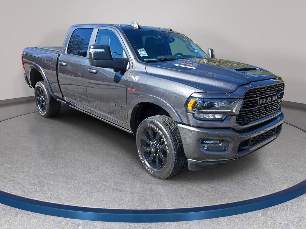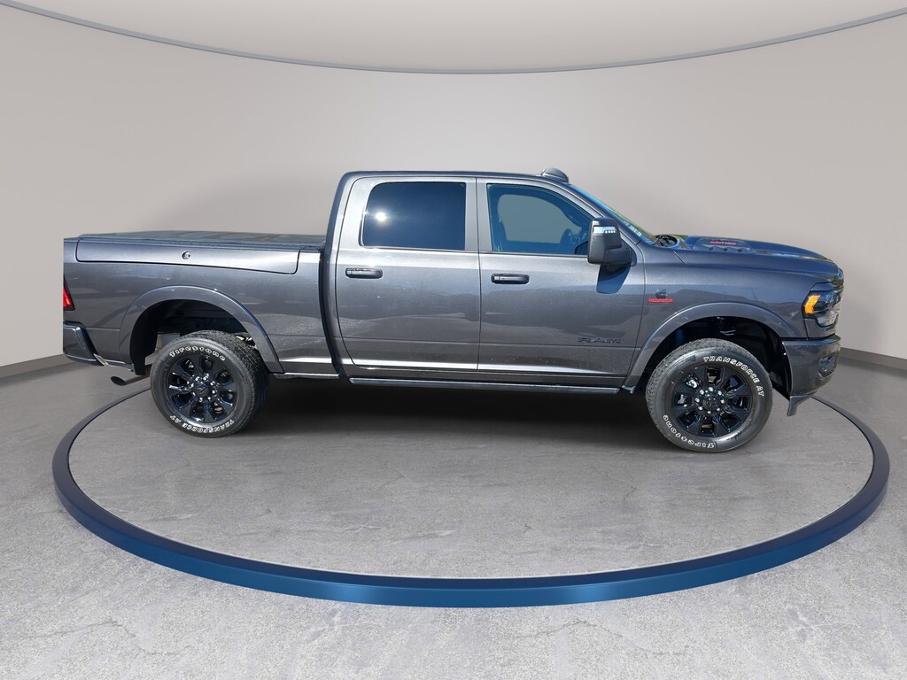 Granite Crystal Metallic Clearcoat 2024 Ram 2500 Limited 4WD 6-Speed Automatic Cummins 6.7L I6 Turbodiesel LOCAL TRADE, LOW MILEAGE, ONE-OWNER, 10 Speakers, 12" Touchscreen Display, 17 Speaker harman/kardon Premium Sound, 220 Amp Alternator, 3.73 Axle Ratio, 4 Adjustable Cargo Tie-Down Hooks, 4-Wheel Disc Brakes, 4G LTE Wi-Fi Hot Spot, ABS brakes, Active Noise Control System, Adaptive Cruise Control w/Stop, Adaptive Steering System, Adjustable pedals, Air Conditioning, Alexa Built-In, Alloy wheels, AM/FM radio: SiriusXM with 360L, Anti-Spin Differential Rear Axle, Apple CarPlay, Apple CarPlay/Android Auto, Audio memory, Auto High-beam Headlights, Auto-dimming Rear-View mirror, Automatic temperature control, Black Exterior Truck Badging, Black Grille Limited, Black Headlamp Bezels, Black Ram Head Tailgate Badge, Black Tail Lamp Bezels, Black Wheel Center Hub, Body Color Grille Surround, Brake assist, Center Hub, Compass, Connected Travel & Traffic Services, Connectivity - US/Canada, CTR Stop Lamp w/Cargo View Camera, Delay-off headlights, Digital 3.0 Rear View Auto Dimming Mirror, Digital Rearview Mirror, Disassociated Touchscreen Display, Dual front impact airbags, Dual front side impact airbags, Electronic Stability Control, Electronically Controlled Throttle, For Details, Visit DriveUconnect.com, For More Info, Call 800-643-2112, Front anti-roll bar, Front Center Armrest w/Storage, Front dual zone A/C, Front fog lights, Front Performance Tuned Shock Absorbers, Full Speed Forward Collision Warning Plus, Fully automatic headlights, Garage door transmitter, Genuine wood console insert, Genuine wood dashboard insert, Genuine wood door panel insert, Global Telematics Box Module (TBM), Google Android Auto, GPS Antenna Input, GPS Navigation, HD Radio, Heated door mirrors, Heated front seats, Heated rear seats, Heated steering wheel, Hill Descent Control, Instrument Cluster Theme 8, Integrated Voice Command w/Bluetooth, Lane Keep Assist, Leather steering wheel, LED Bed Lighting, Limited Leather Bucket Seats, Limited Level 1 Equipment Group, Low tire pressure warning, Luxury Door Trim Panel (CTH), Manufacturer's Statement of Origin, Memory seat, MOPAR Deployable Bed Step, MOPAR Front & Rear Rubber Floor Mats, MOPAR Spray In Bedliner, Navigation System, Night Edition, Occupant sensing airbag, Off Road Package, Off-Road Information Pages, Overhead airbag, Panic alarm, ParkView Rear Back-Up Camera, Pedal memory, Power Deployable Running Boards, Power door mirrors, Power driver seat, Power passenger seat, Power steering, Power Sunroof, Power windows, Quick Order Package 2HM Limited, Radio data system, Radio: Uconnect 5 Nav w/12.0" Display, Radio: Uconnect 5 Nav w/8.4" Display, Rain sensing wipers, RamBox Cargo Management System, Ramcharger Wireless Charging Pad, Rear anti-roll bar, Rear Performance Tuned Shock Absorbers, Rear step bumper, Rear window defroster, Remote keyless entry, Security system, Selectable Tire Fill Alert, SiriusXM Radio Service, SiriusXM w/360L, Speed control, Split folding rear seat, Sport Performance Hood, Steering wheel mounted audio controls, Surround View Camera System, Tachometer, Tilt steering wheel, Tip Start, Tow Technology Plus Group, Traction control, Trailer Reverse Guidance, Trailer Reverse Steering Control, Trailer Surround View Camera System, Trailer Tow Pages, Tri-Fold Tonneau Cover, Trip computer, Truck Bed Cargo Divider, Turn signal indicator mirrors, Variably intermittent wipers, Vendor Painted Cargo Box, Vendor Painted Cargo Box Tracking, Ventilated front seats, Voltmeter, Wheels: 20" x 8.0" Cast Aluminum Black, Wheels: 20" x 8.0" Satin Carbon w/Chrome Inserts.