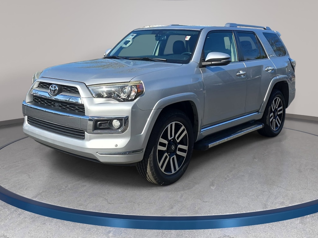 Clean CARFAX. Classic Silver Metallic 2014 Toyota 4Runner Limited 4WD 5-Speed Automatic with Overdrive 4.0L V6 SMPI DOHC 15 Speakers, 20" x 7.5" Unique Dual 6-Spoke Alloy Wheels, 4-Wheel Disc Brakes, ABS brakes, Air Conditioning, Alloy wheels, AM/FM radio: SiriusXM, Anti-whiplash front head restraints, Auto-Dimming Rear-View Mirror, Automatic temperature control, Body Color Heated Mirrors, Brake assist, Delay-off headlights, Dual front impact airbags, Dual front side impact airbags, Electronic Stability Control, Emergency communication system: Safety Connect, Exterior Parking Camera Rear, Front dual zone A/C, Front fog lights, Fully automatic headlights, Garage Door Opener, Garage door transmitter: HomeLink, Heated door mirrors, Heated front seats, Heated/Ventilated Front Bucket Seats, Memory seat, Navigation System, Power door mirrors, Power driver seat, Power moonroof, Power Tilt & Slide Moonroof w/Sunshade, Radio data system, Radio: Entune Premium JBL Audio with Navigation, Rear window wiper, Remote keyless entry, Right & Left Individual Air Conditioner, Roof rack: rails only, Speed control, Speed-sensing steering, Steering wheel mounted audio controls, Tachometer, Telescoping steering wheel, Tilt steering wheel, Traction control, Trip computer, Variably intermittent wipers, Voltmeter.