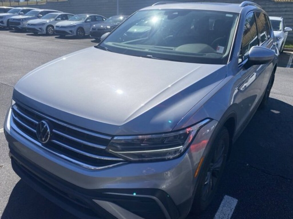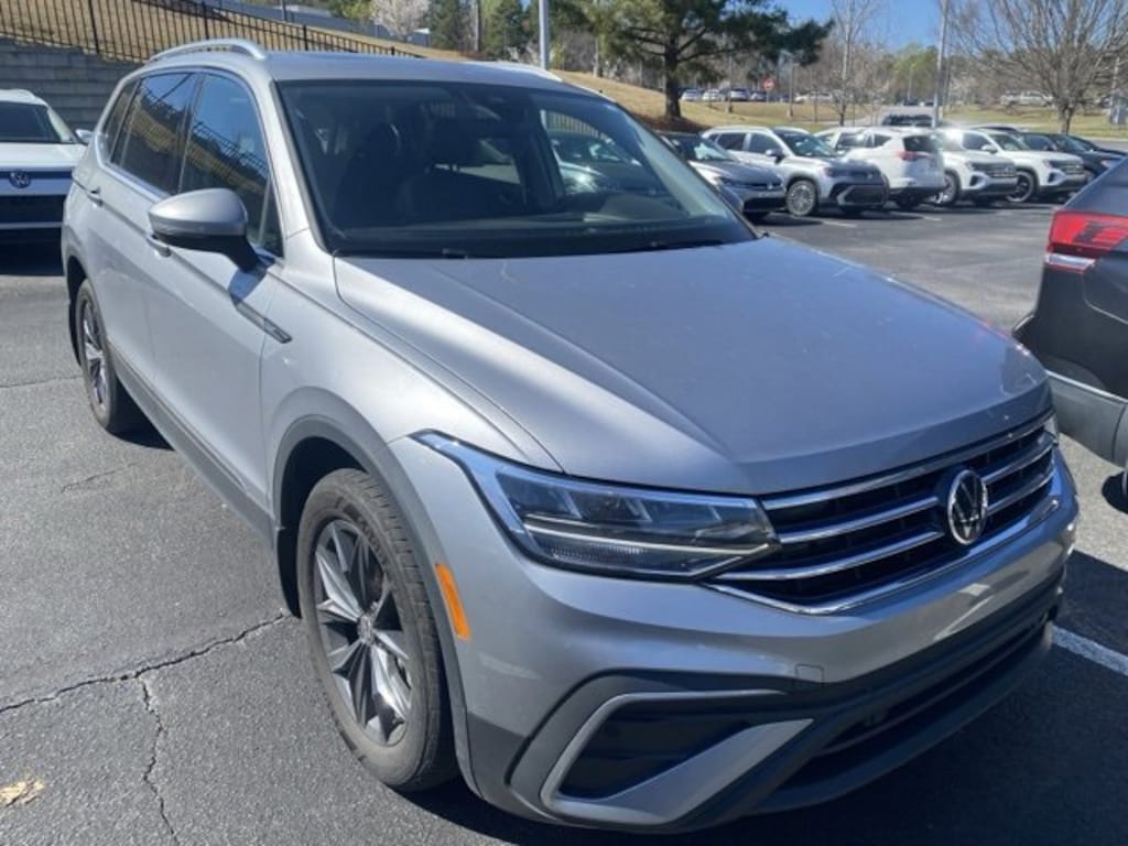 Certified. Pyrite Silver Metallic 2023 Volkswagen Tiguan 2.0T SE FWD 8-Speed Automatic with Tiptronic 2.0L TSI DOHC Certified Warranty - 2 Years / 24,000 Miles, Local Trade, Non-Smoker, Purchased Here, Serviced Here, 3.33 Axle Ratio, 3rd row seats: bench, 4-Wheel Independent Suspension, AM/FM radio: SiriusXM with 360L, Automatic temperature control, Brake assist, Electronic Stability Control, Exterior Parking Camera Rear, Front dual zone A/C, Fully automatic headlights, Heated front seats, Panoramic Sunroof Package, Perforated V-Tex Leatherette Seating Surfaces, Power driver seat, Power Liftgate, Radio: MIB3 Composition Media AM/FM/HD, Rain sensing wipers, Rear window wiper, Remote keyless entry, Speed-sensing steering, Split folding rear seat, Steering wheel mounted audio controls, Traction control, Wheels: 18" Dark Graphite Painted 10-Spoke Alloy.